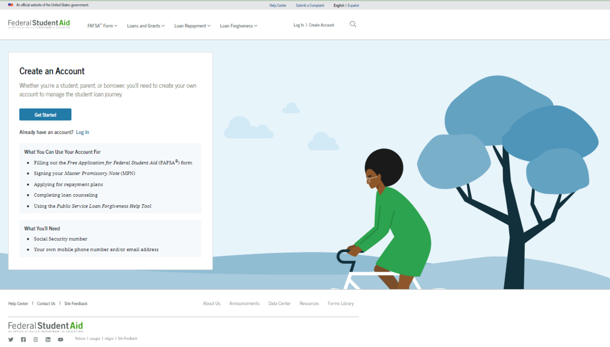 FAFSA. ED. GOV will look similar to this: